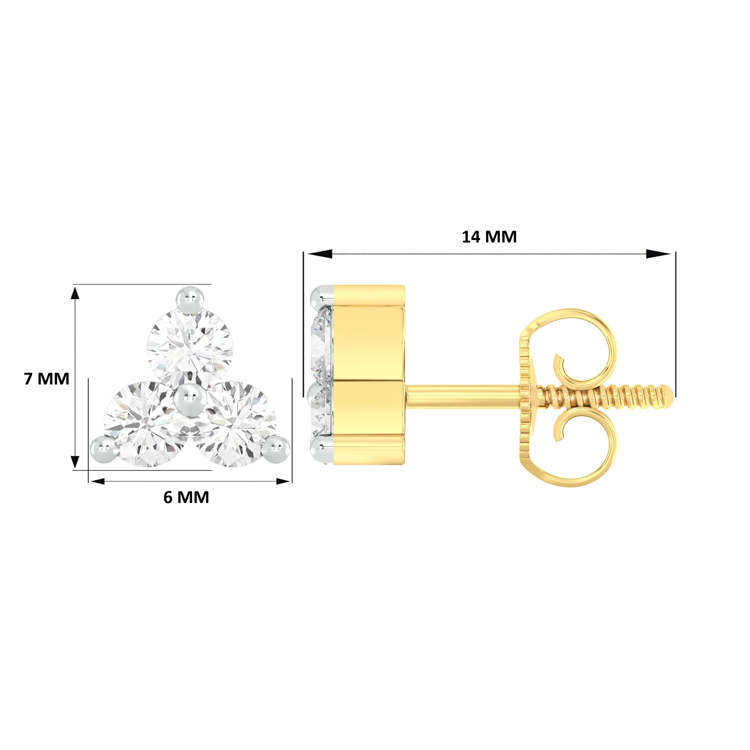 18k Yellow Gold and Diamond Stud with gold weight of 2.08g