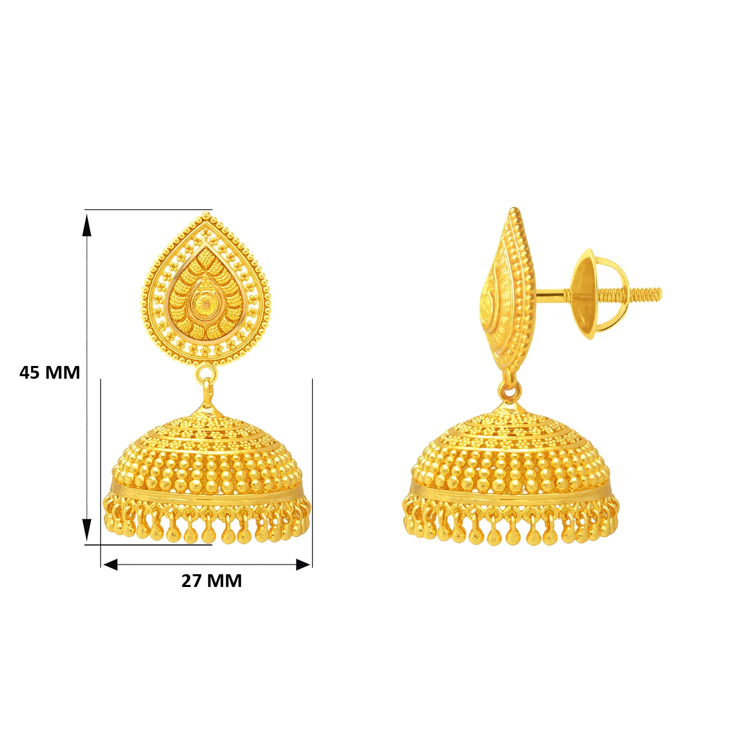 22K Gold Grand Teardrop Jhumka Filigree Earrings