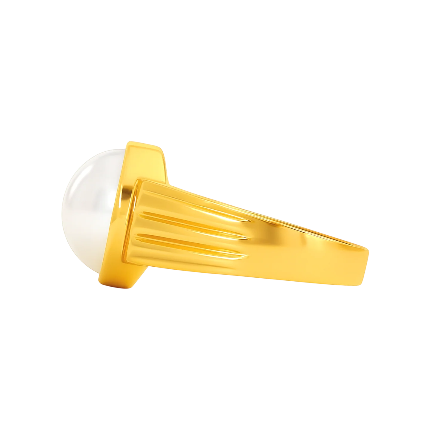 22k gold ring with large pearl. Pearl is 5.50ct. Thick band measures from 4mm thick to 6mm thick. Ring size is 8.