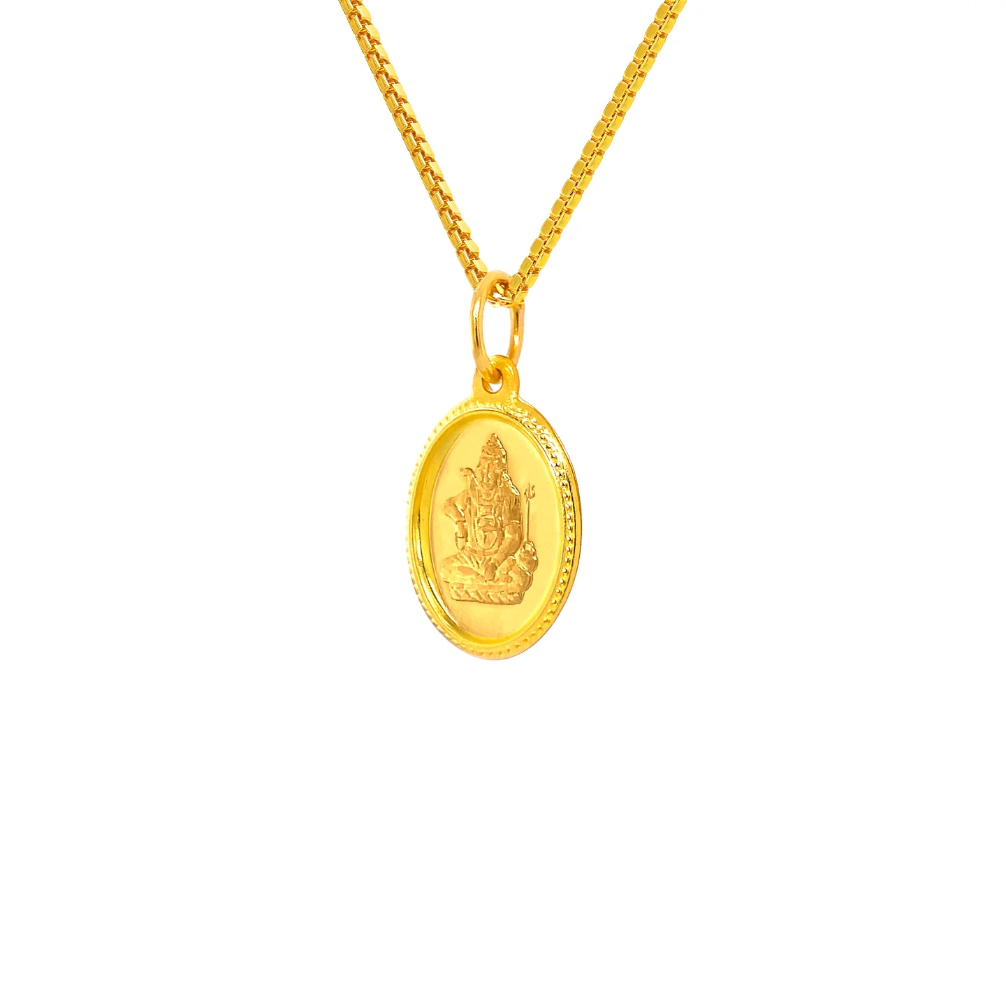 22k small Lord Shiva reversible pendant with OM design on the reverse side. Oblong pendant meauring 23mm long (from top of bale) and 13mm wide. Bale can accommodate a small 3mm chain. (Chain not included)